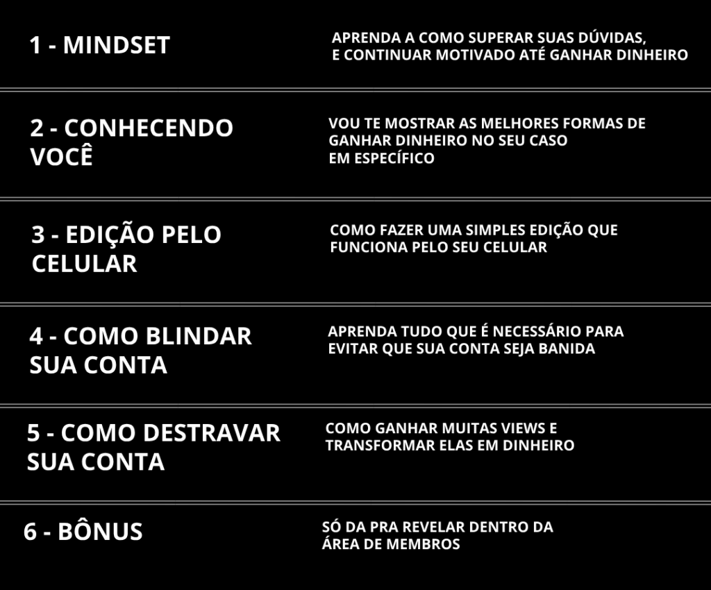 O principal pilar do meu método é que eu não ensino teoria, mas sim o que eu vivo isso todos os dias. Estou sempre testando novas estratégias, experimentando formas de crescer nas redes sociais e analisando o que realmente funciona. Aqui, você não perde tempo com achismos ou "diquinhas" sem fundamento. Tudo que eu ensino foi comprovado na prática, para que você receba um método direto ao ponto, sem enrolação e sem precisar gastar 1 centavo se você quiser. Eu faço, eu erro, eu acerto – e você já recebe o conhecimento pronto para aplicar e crescer!